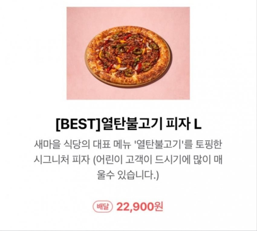 피자와 함께 새마을식당의 '열탄불고기'를 추가해