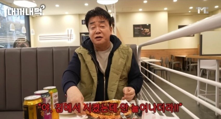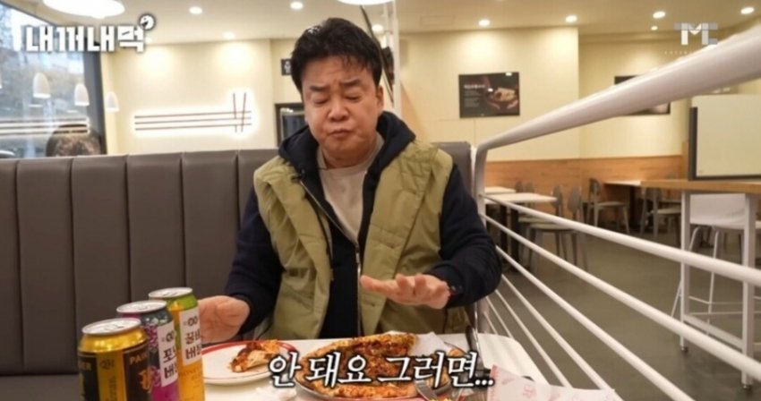 더본코리아의 직영점 빽보이피자 서초점에서 유튜버 '내꺼내먹' 콘텐츠를 찍는 백종원