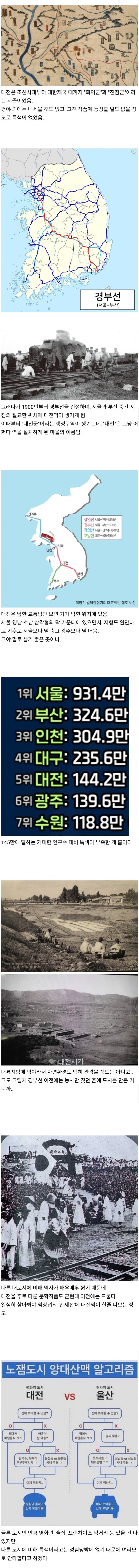 - 애초에 도시가 아니라 (말그대로) 논밭이었고, 경부선 뚫리면서 인위적으로 생긴 도시다.