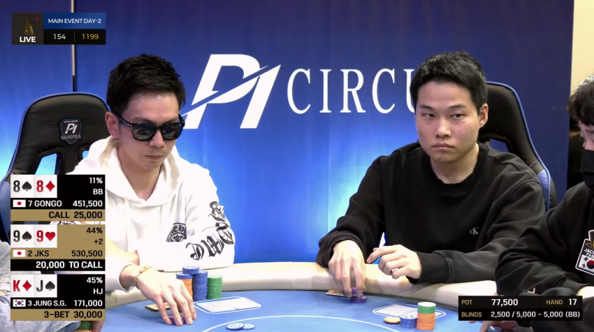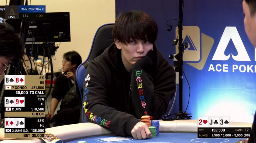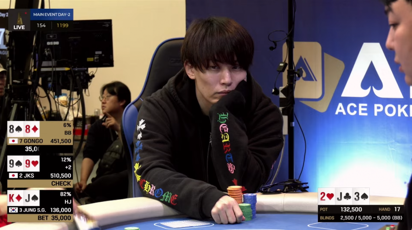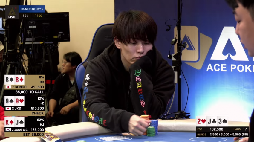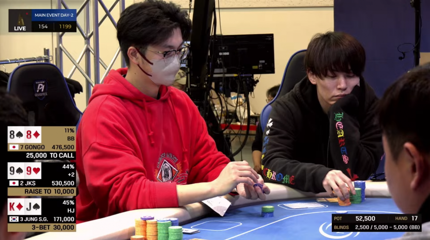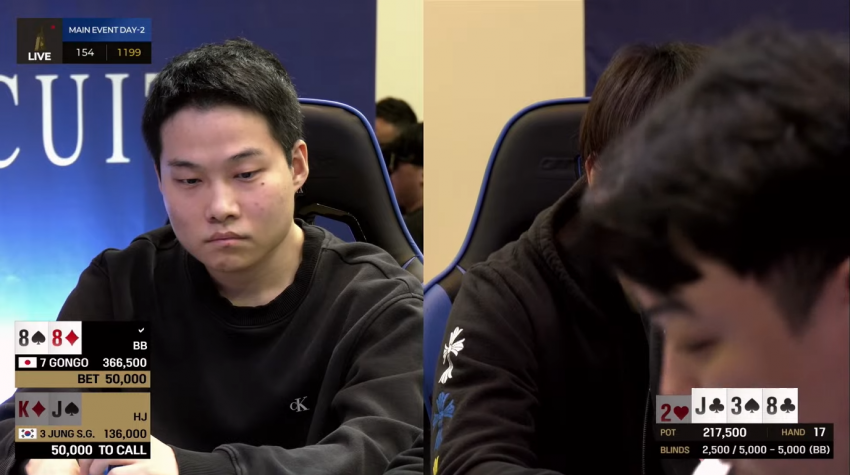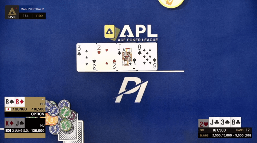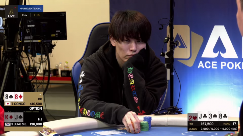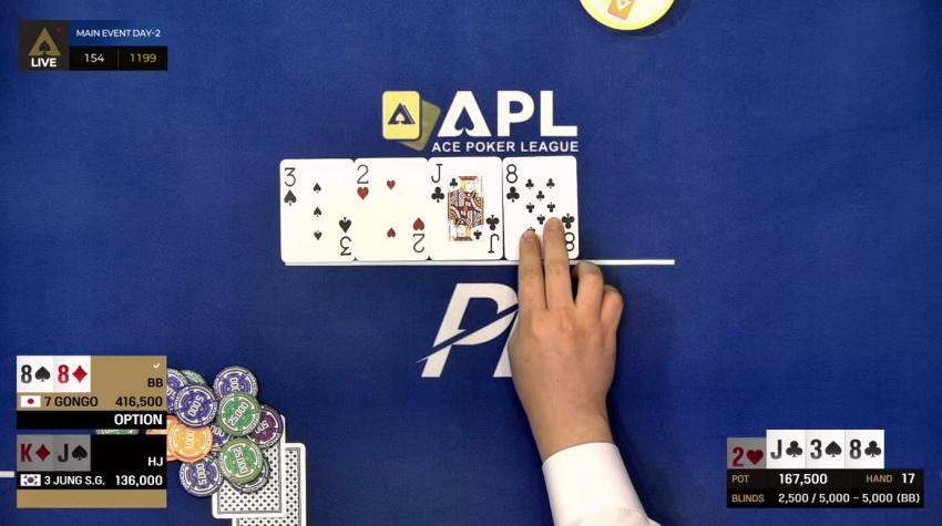 이렇게되면 GONGO선수는 888JJ 풀하우스가 되었고