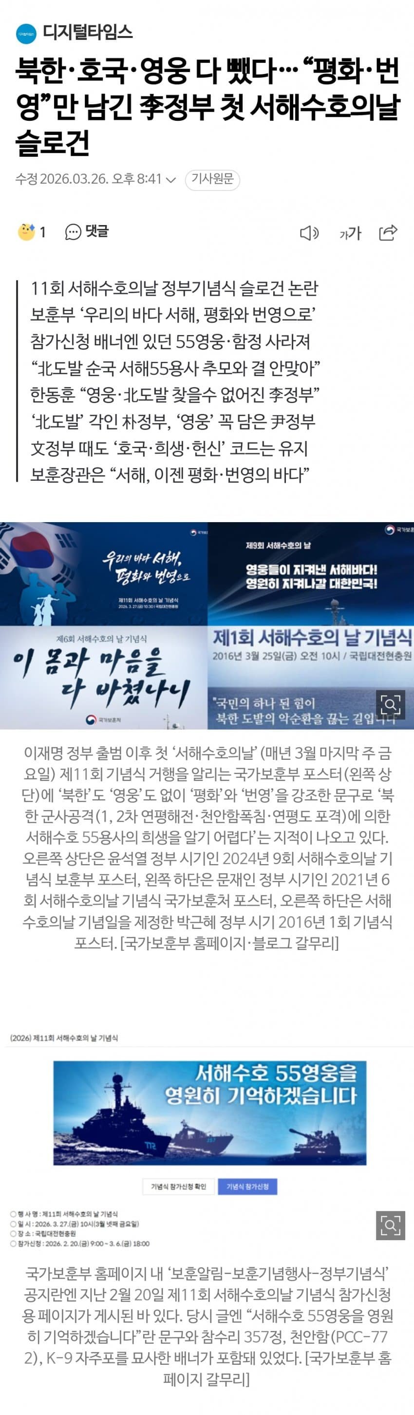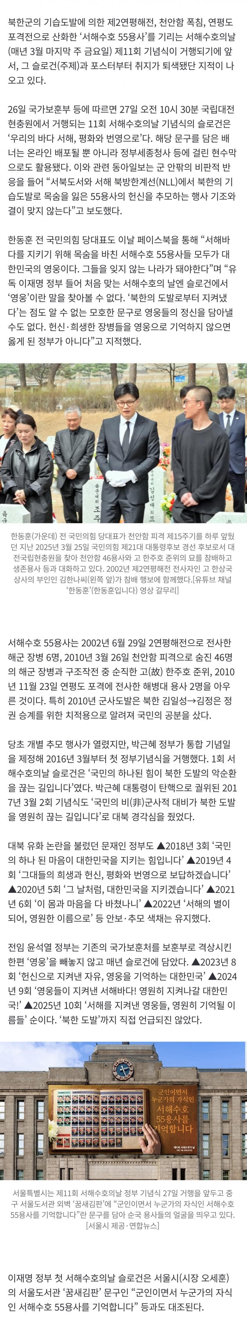 [펌] [중갤] 북한·호국·영웅 다 뺐다…“평화·번영”만 남긴 李정부 첫 서해수호의날