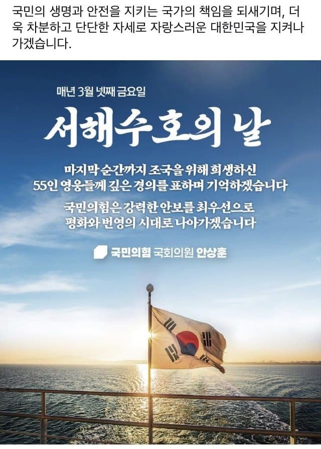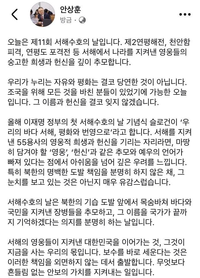 - 안상훈페북업)서해수호의 날_영웅•헌신 등 추모,예우 언어 빠져 아쉬워