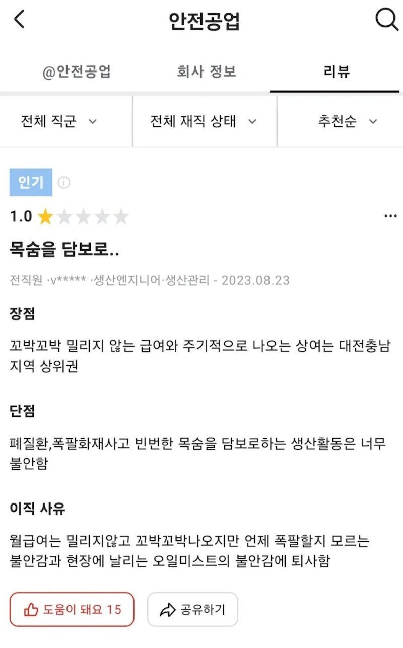 [펌] 이번에 화재가 발생한 대전 자동자부품공장 리뷰