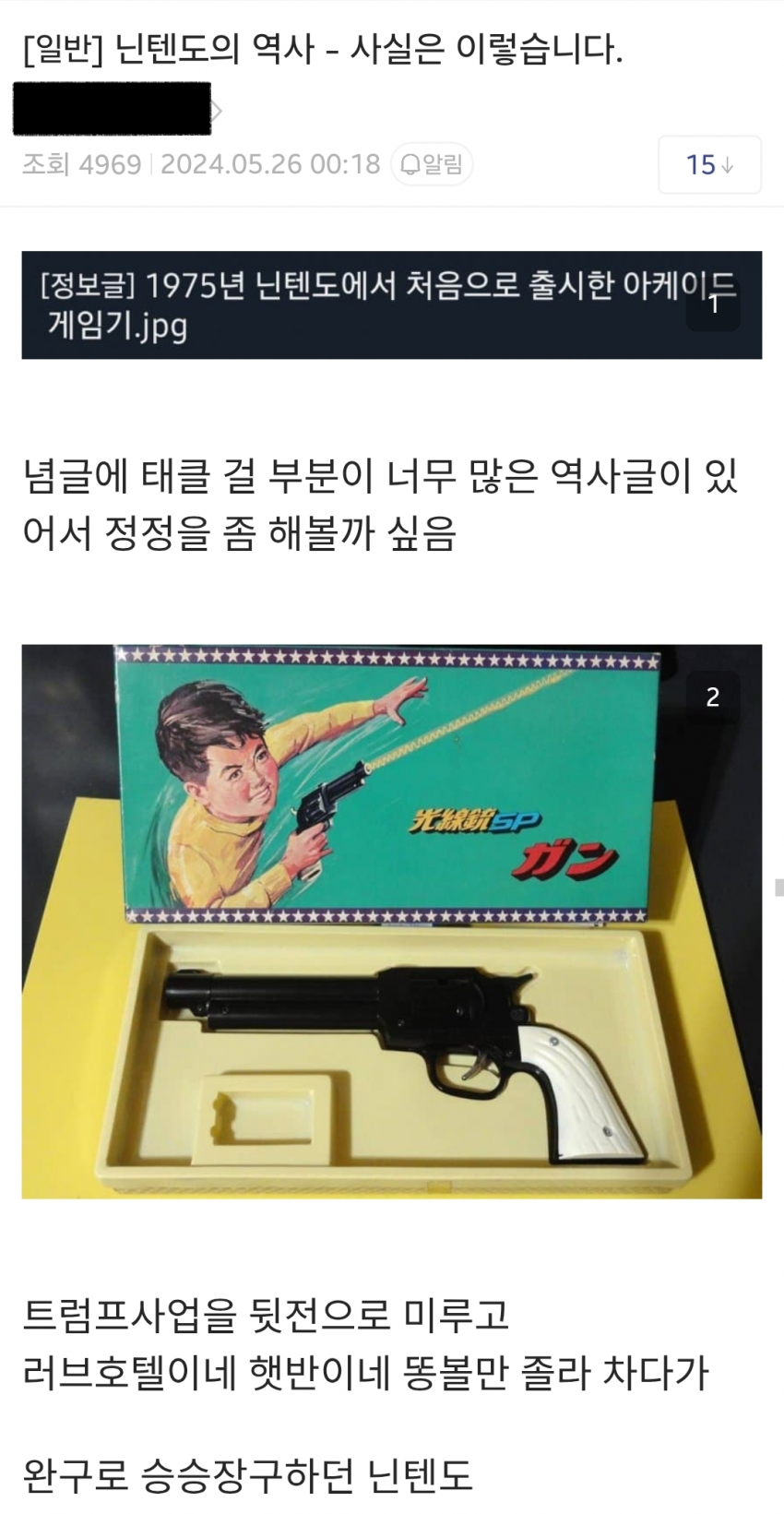닌갤에 종종 올라오는 '닌텐도는 러브호텔 사업도 했던 곳이잖아' 글들과