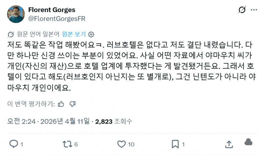 이 사람도 닌텐도 러브호텔에 대해서 사실무근이라는 입장