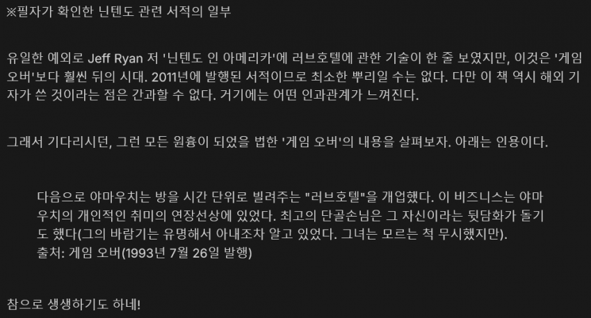 [펌] [닌갤] "닌텐도는 러브호텔 사업을 한 적 없다"