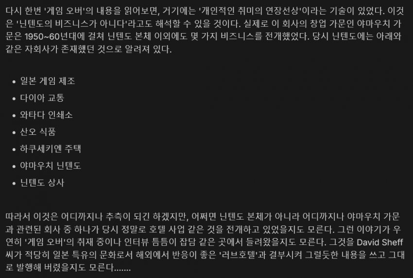 닌텐도가 러브호텔을 했다는 이야기는 마찬가지로