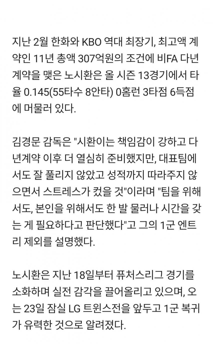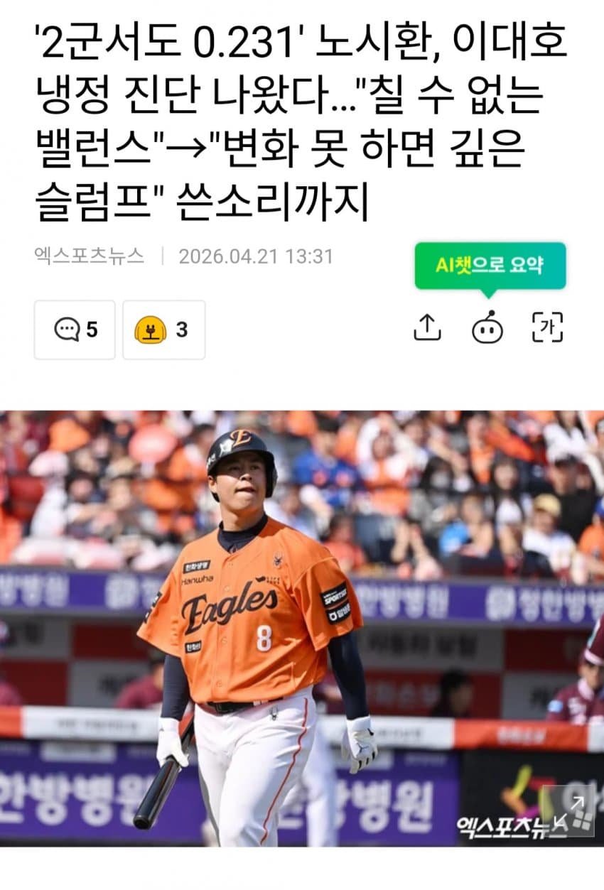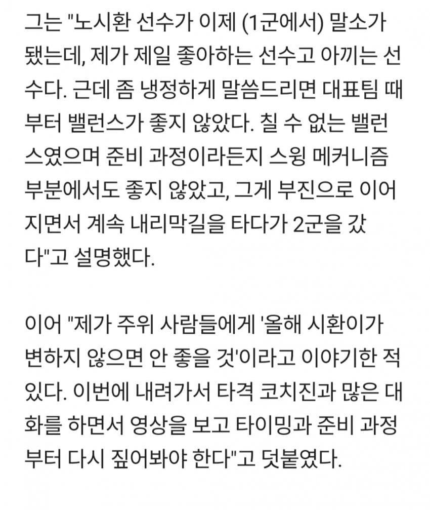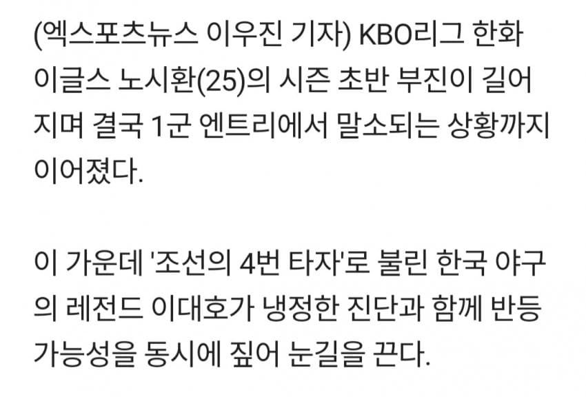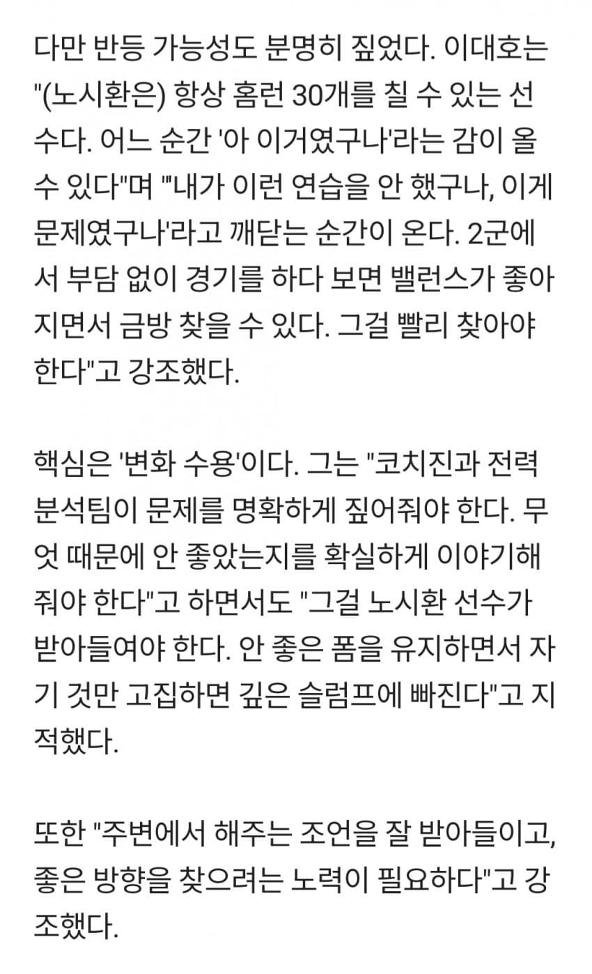 [펌] [해갤] 노시환, 이대호 냉정 진단 나왔다