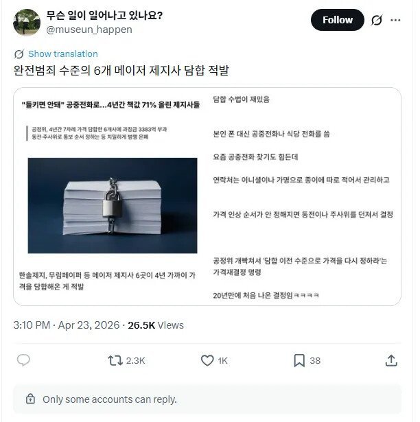 [펌] 제지사들 담합 적발