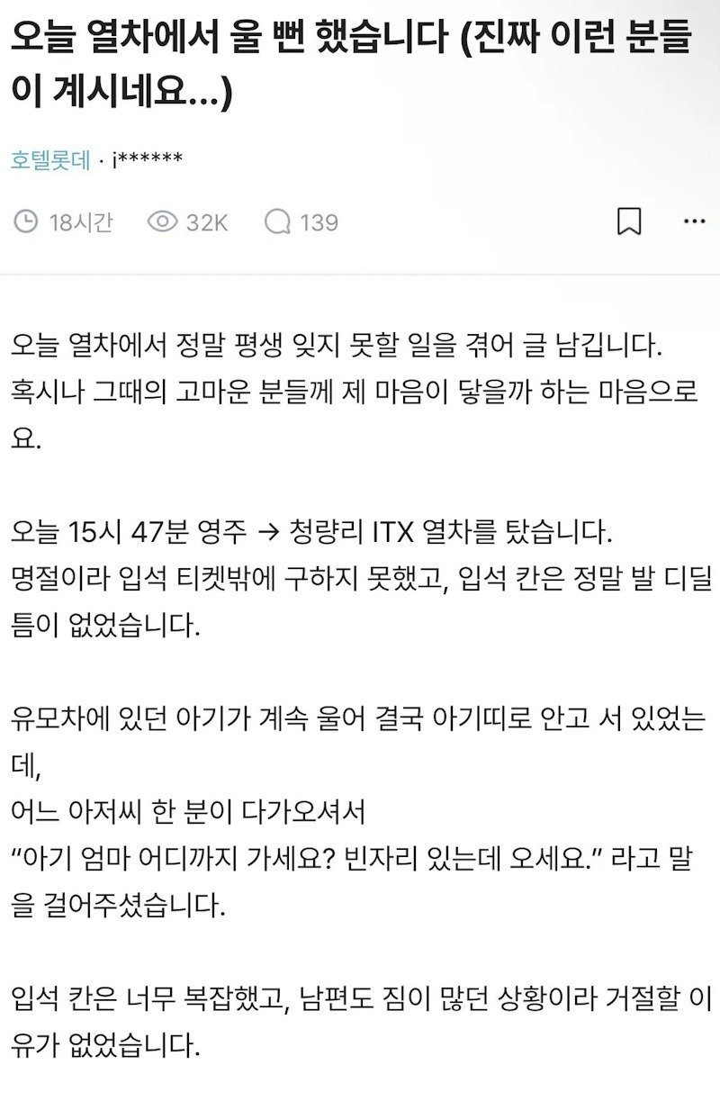 [펌] 설 명절에 열차에서 울 뻔 했습니다