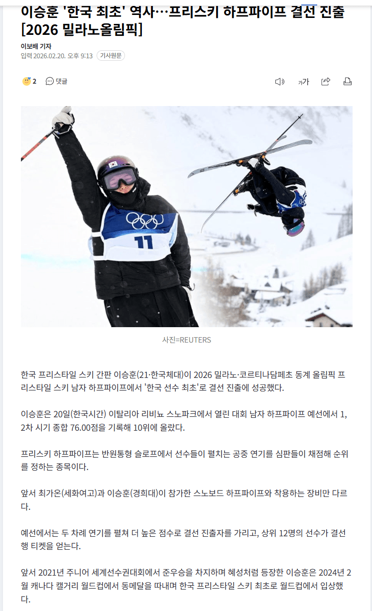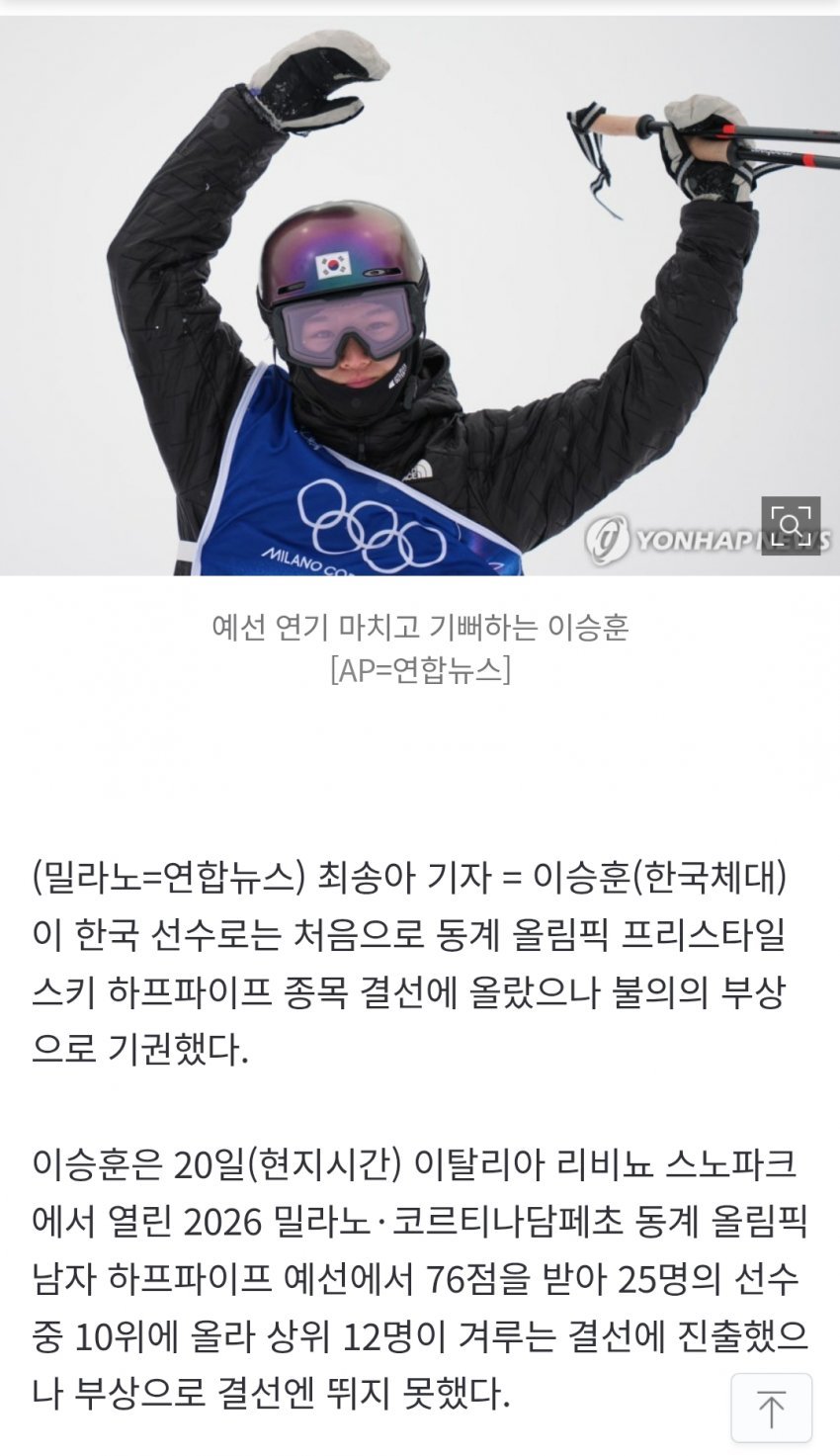 - 이승훈, '한국 최초' 프리스키 하프파이프 결선 진출!