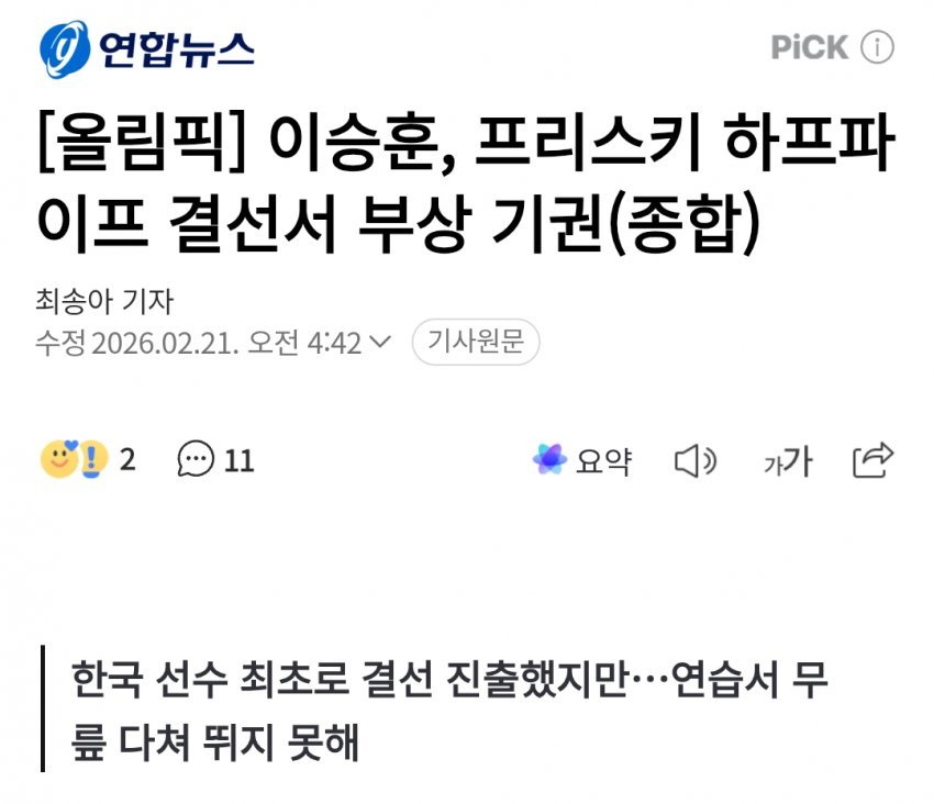 - 훌쩍훌쩍 프리스키 이승훈, 결선 앞두고 부상으로 기권