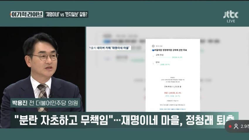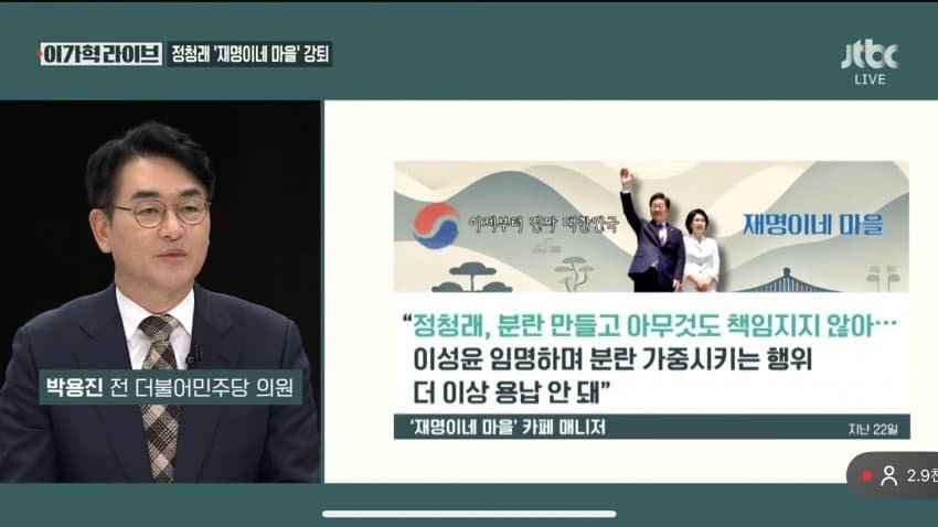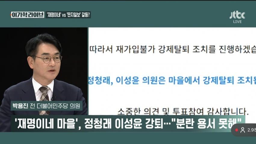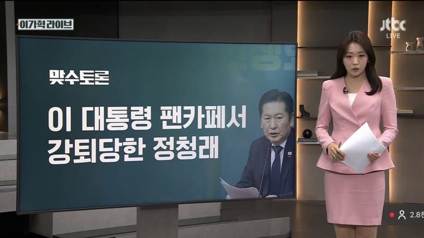- JTBC) 정청래....팬카페....퇴출 뉴스 나온다ㅋㅋ
