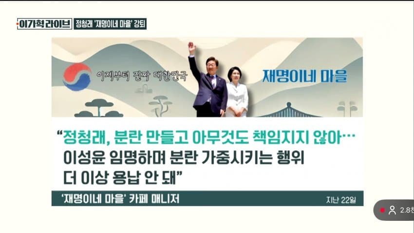 - 관련게시물 : 정청래, 이성윤 '재명이네 마을'서 강퇴 ㅋㅋㅋㅋㅋ