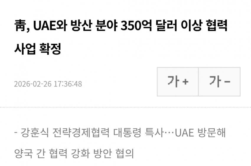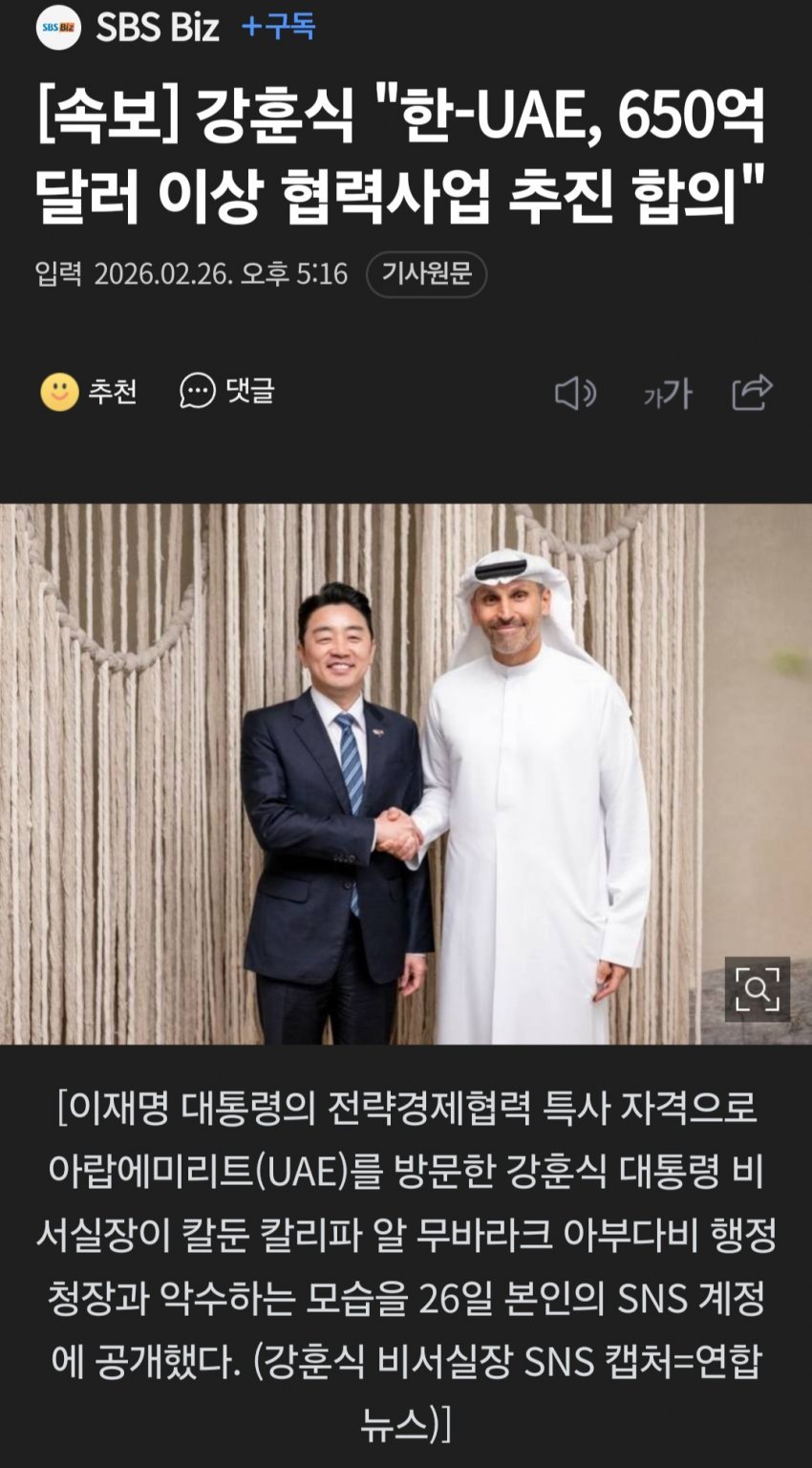 - [속보] 강훈식 "韓-UAE, 방산·투자협력 등 650억불 이상 사업 공