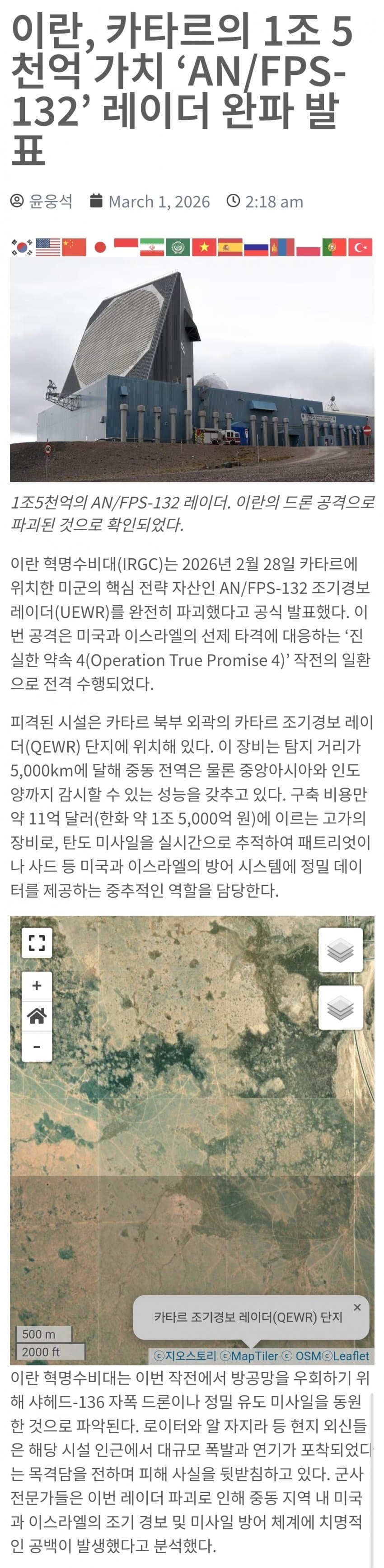 - [속보] 이란, 미군의 핵심전략자산 레이더 완파