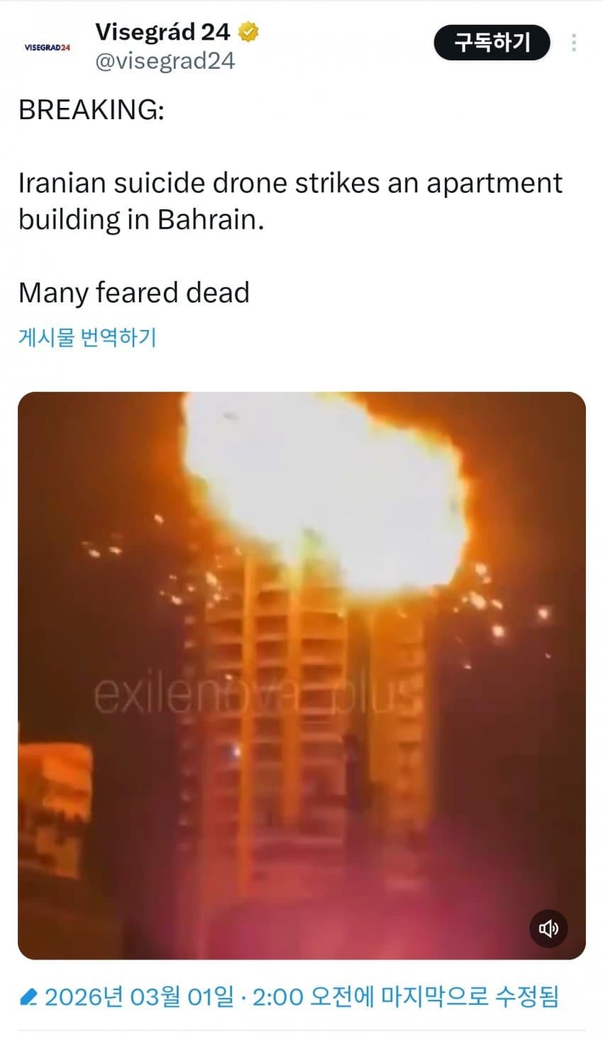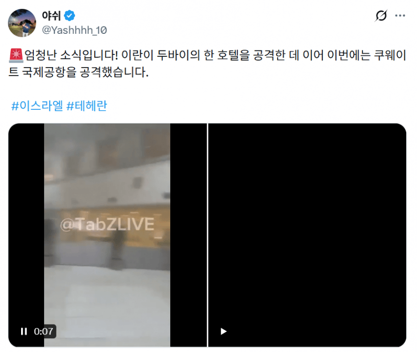 - 관련게시물 : 실시간 이란 드론에 폭격당한 두바이 풍경