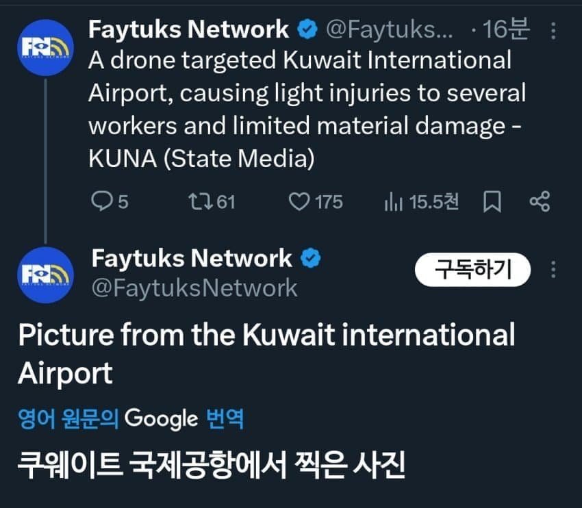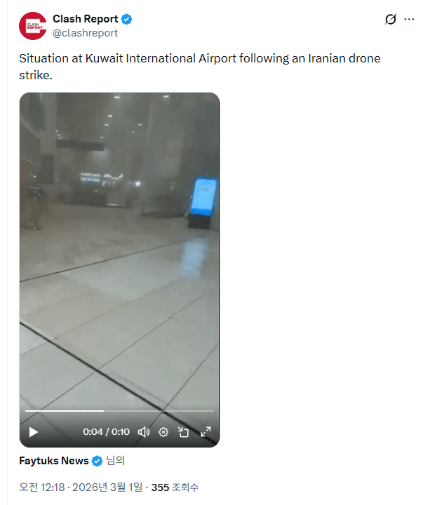 - 속보) 이란, 쿠웨이트 국제공항 공습