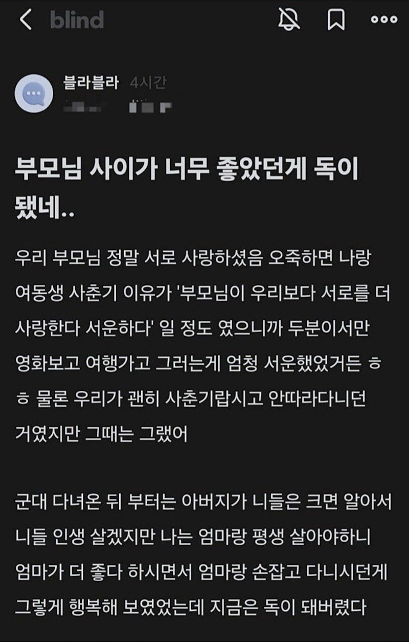 [펌] 부모님 사이가 좋았던게 독이됐네