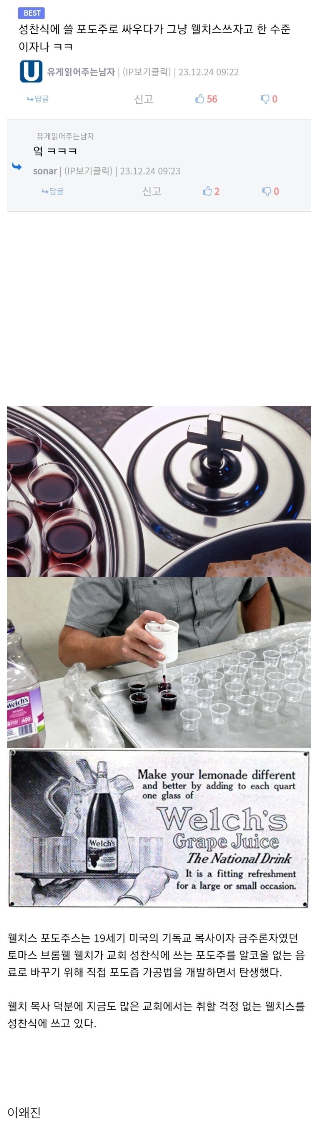[펌] 교회에서 포도주 대신 웰치스 써도 됨?