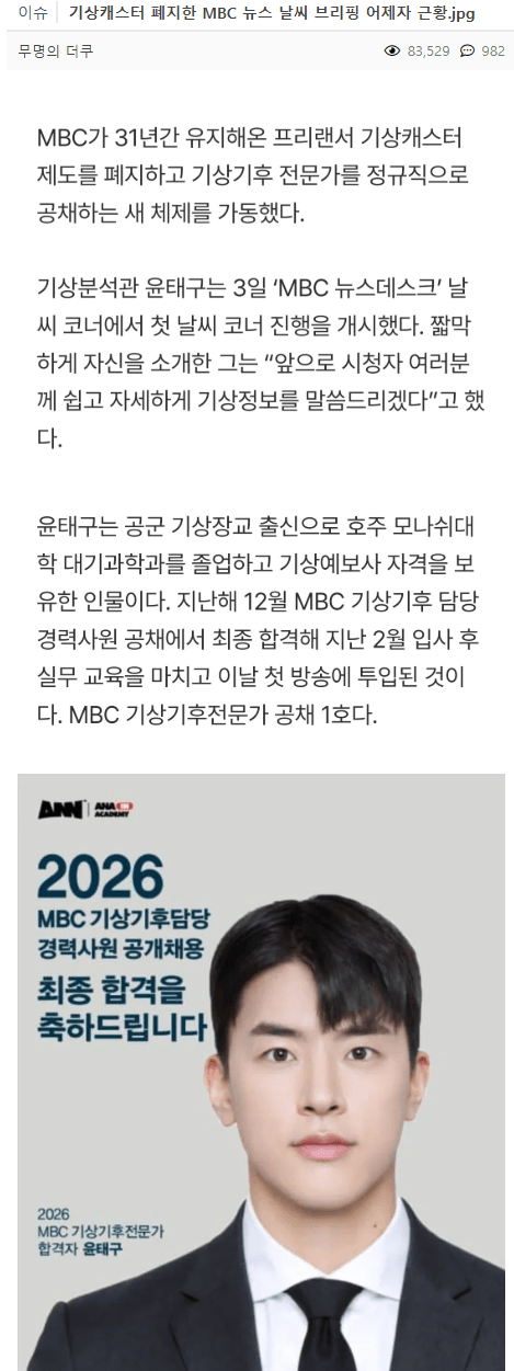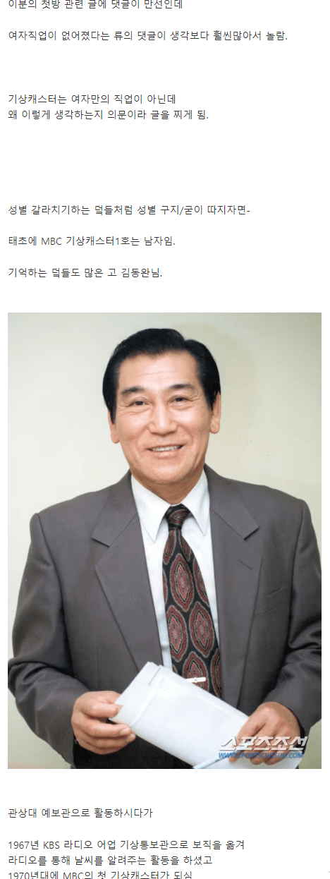 [펌] [주갤] 남자 기상분석관 채용한 MBC 근황을 본 여초반응