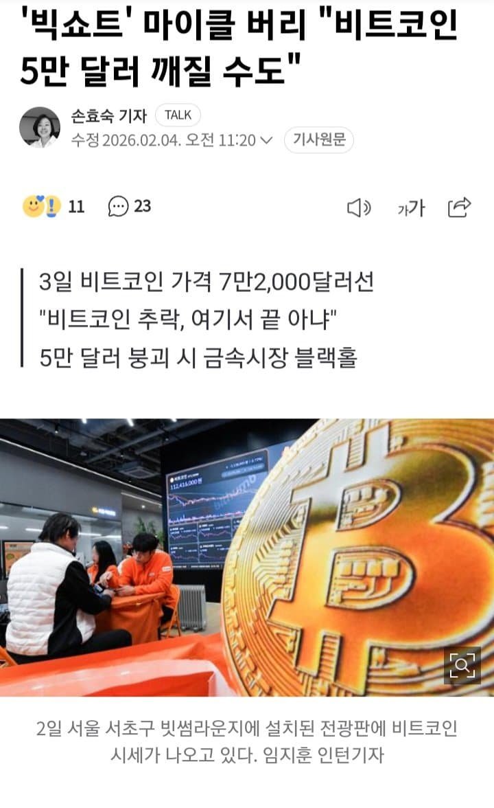 [펌] [러갤] '빅쇼트' 마이클 버리 "비트코인 5만 달러 깨질 수도"