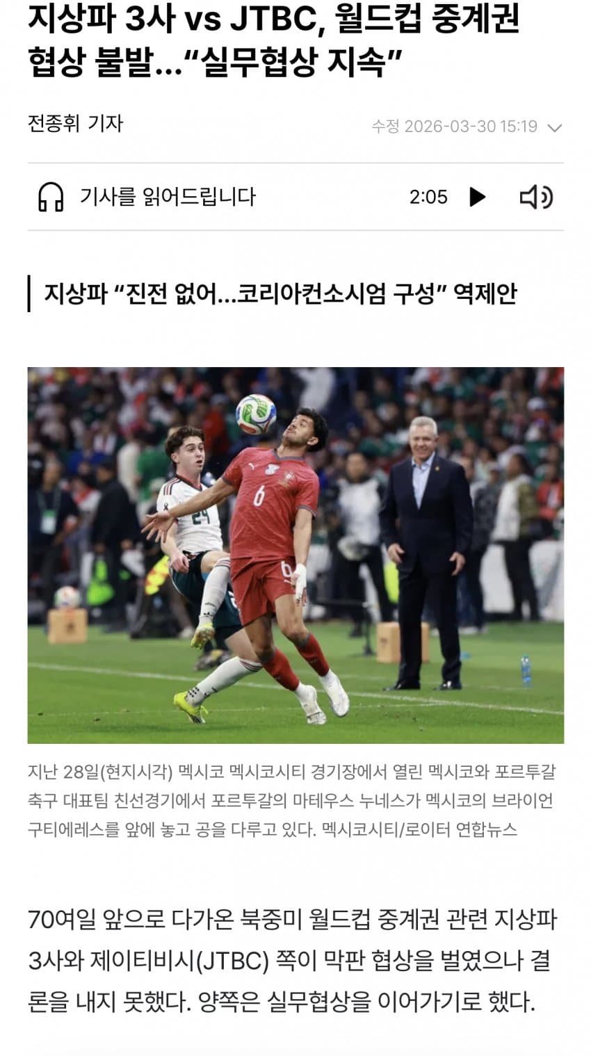 1. 2026 월드컵 중계권 협상과 관련 진전은 없었음. 실무 협상은 이어갈 예정임.