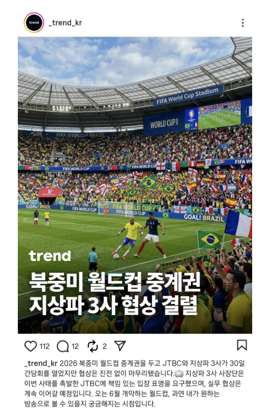 - 2026 월드컵 중계권 협상 관련 3사 공동 입장 요약