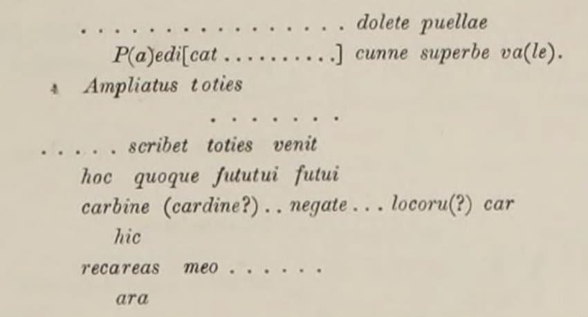 "세쿤두스가 프리마에게, 어디에 있든 안부를 전한다. 사랑하는 여인이여, 나를 사랑해주시오"