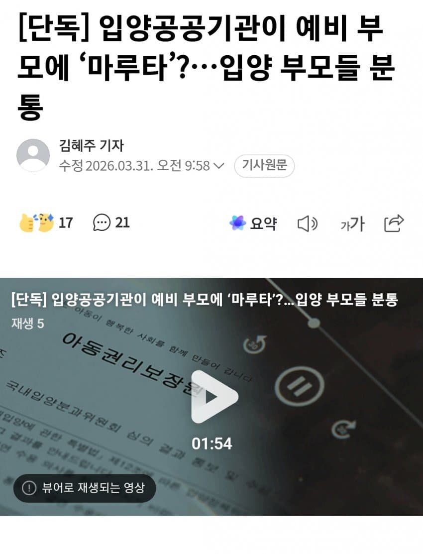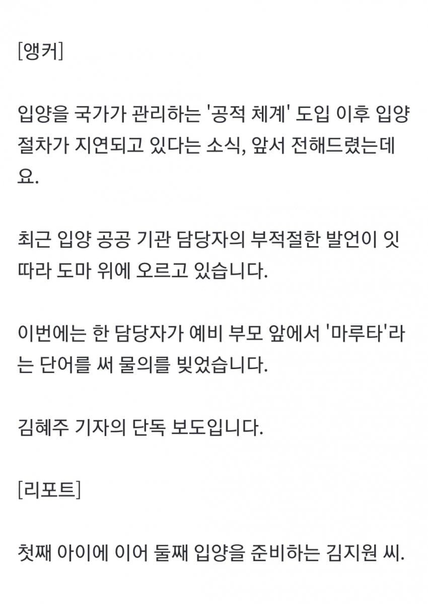 - 관련게시물 : 입양 아동 물량·소진" 예비 부모 경악케 한 담당 직원 말ㄷ ㄷ