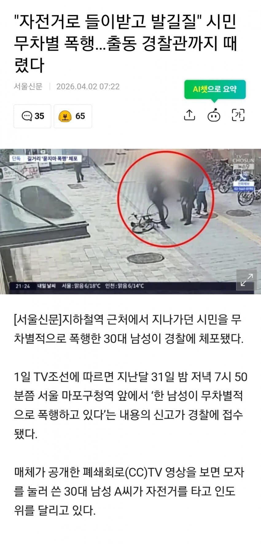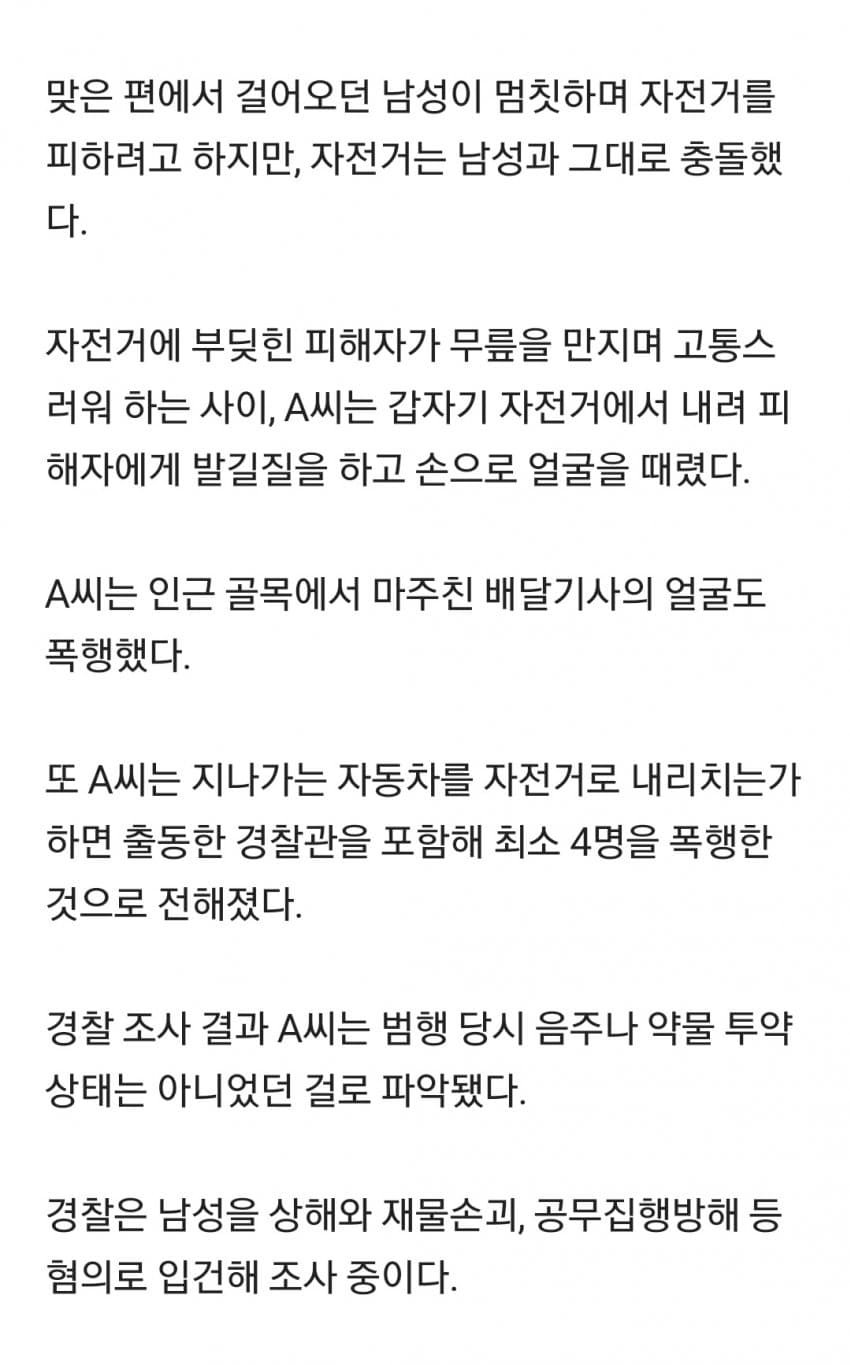 [펌] [부갤] 자전거로 시민 들이받고 발길질... 경찰까지 때린 남성