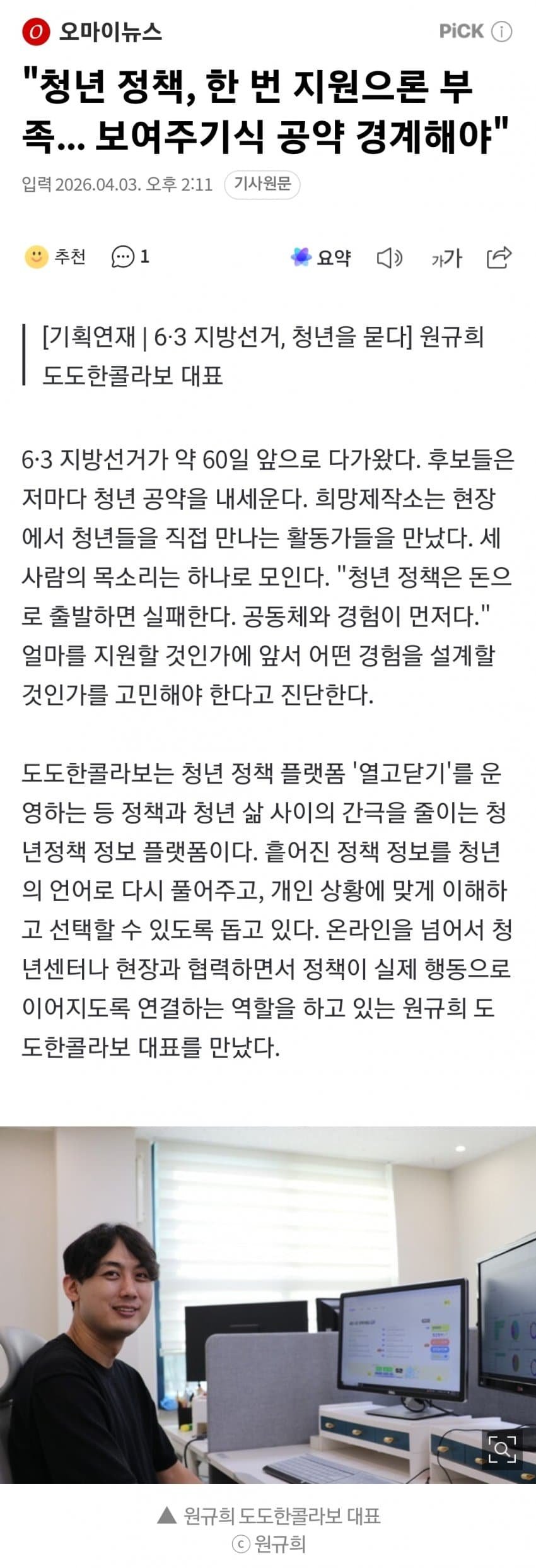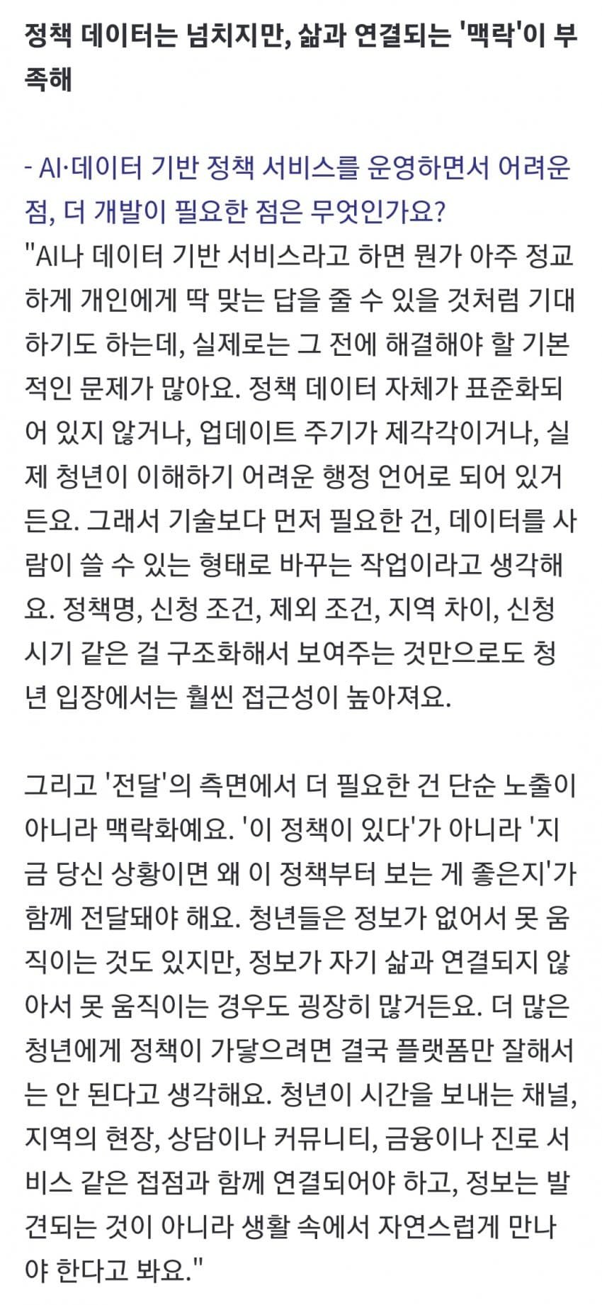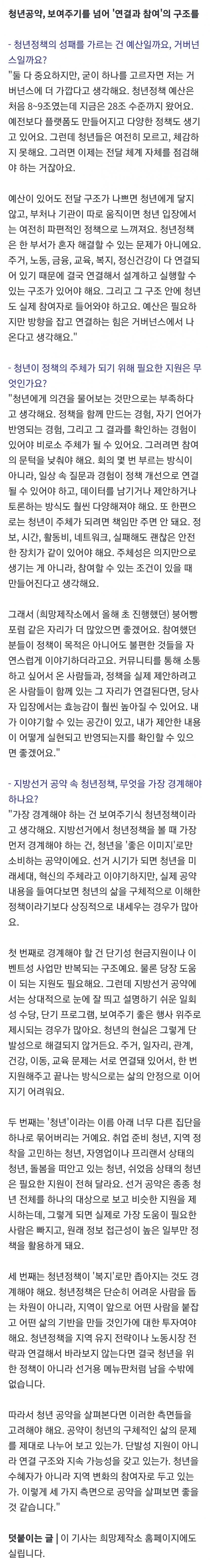 "청년 정책, 한 번 지원으론 부족... 보여주기식 공약 경계해야"