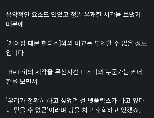 그리고 나왔으면 케이팝 데몬 헌터스도 쌈싸먹을 명작 나왓을거라고 징징댐ㅋㅋ