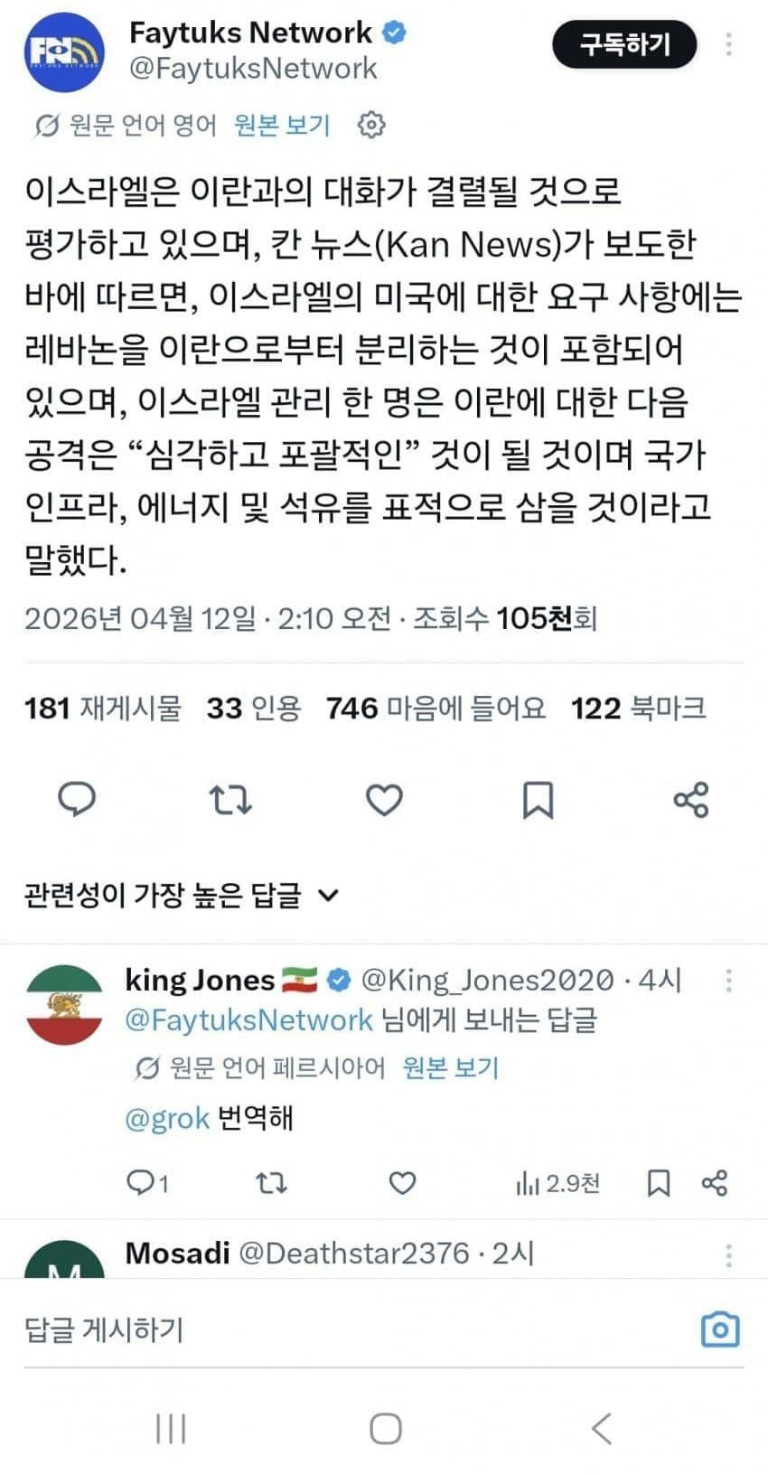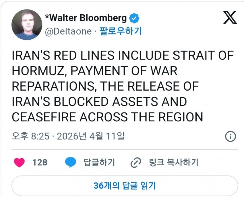 - [속보] 이란의 절대 양보 불가 조건: 호르무즈 해협, 전쟁 배상금 지급