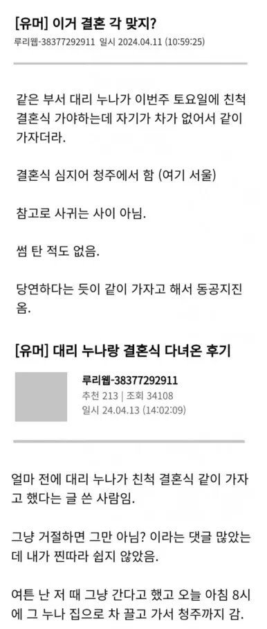 [펌] 대리 누나의 친척 결혼식 간 썰의 후기의 후기