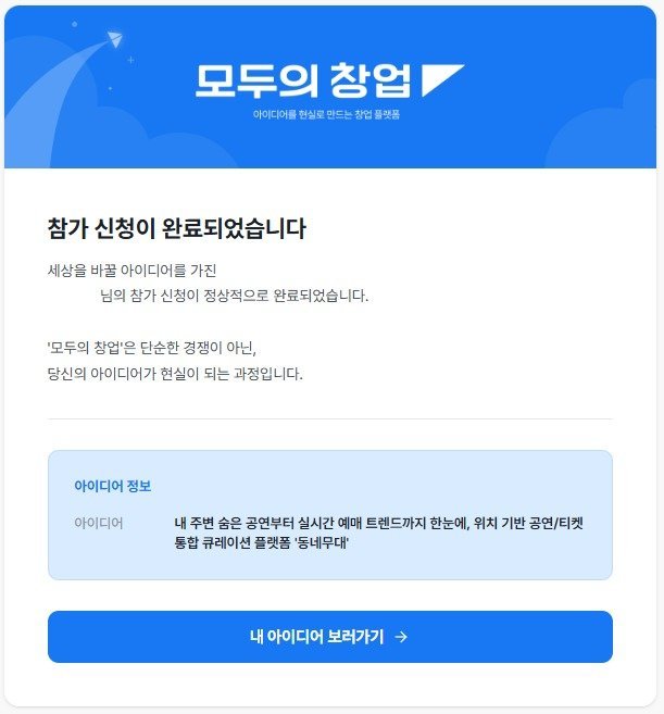 그리고 오늘, 이 제대로 작동하는 프로덕트를 무기 삼아 '모두의 창업' 이라는 프로그램에 방금 지원서를 냈습니다! 서류 한 장 덜렁 들고 갔던 예전과는 달리, 이번엔 당당하게 시연 영상과 사이트 링크까지 꽉꽉 채워 넣었습니다.