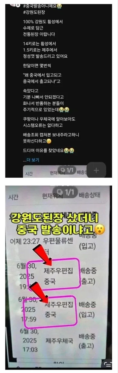 '그럼 제주에서 발송한게 중국 거쳐 들어간다는거예요? 아니 왜요?' 하는 댓글이 달리는군요 - _-a