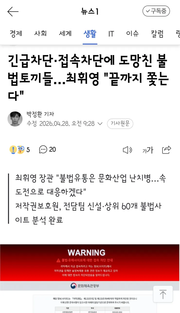 [펌·클리앙] 긴급차단·접속차단에 도망친 불법토끼들…최휘영 '끝까지 쫓는다'