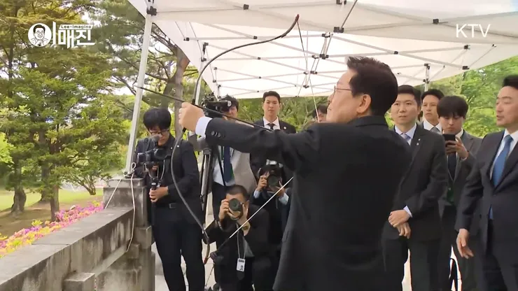 李대통령, 현충사 궁도대회 참관…"한번 해볼까요" 시궁도 | 뉴스1
