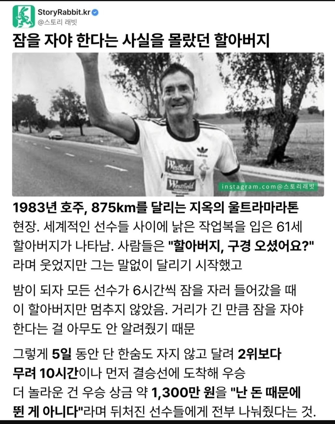 [펌] 마라톤 대회에서 61세 할아버지가 우승한 비결