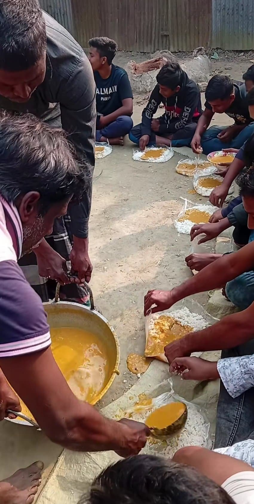 길바닥에 봉지깔고 밥에 카레 퍼주고