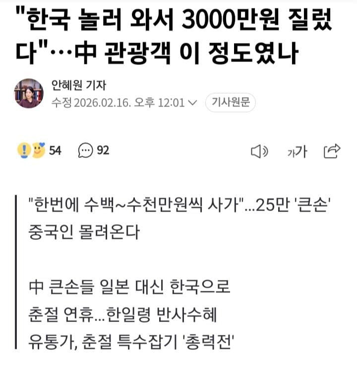 "한국 놀러 와서 3000만원 질렀다"…中 관광객 이 정도였나